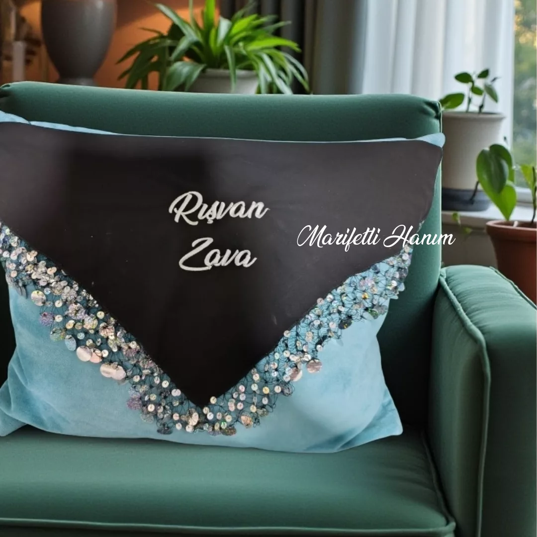 50×50 cm kumaş etrafına pul süslemeli oya ile hazırlanmış nakışlı büyük halay mendili. Nakış rengi ve pul rengi seçiminize göre belirlenmektedir. Sipariş verirken nakış rengini seçerek nakışlanacak isimleri sipariş notuna eklemeyi unutmayın.