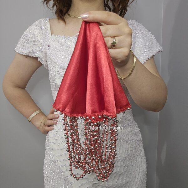 Kırmızı Boncuk Oyalı Gelin Mendili
