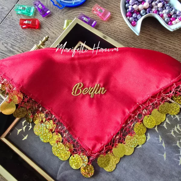 Marifetli Hanım’ın Kına Gecesi ve Bekarlığa Veda Eğlencesi için hazırladığı hediyelik ürünlerde yer alan ve gelinin yakın arkadaşlarının hayran kaldığı bir diğer ürün Nakışlı Halay Mendili.